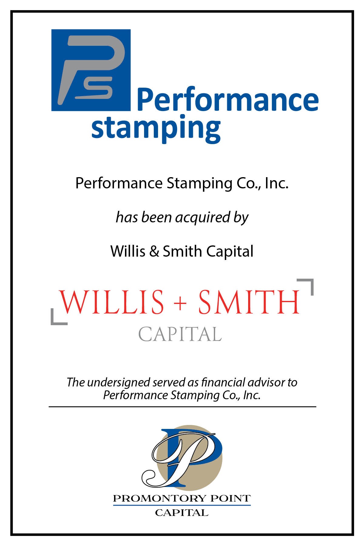 As this second-generation family-held business began to contemplate ownership’s future goals and objectives, the Company’s law firm recommended an introduction to Promontory Point Capital. PPC was engaged as the Company’s investment banker to first prepare the materials to market the business, followed by leading a confidential outreach process targeting both strategic acquirers and private equity buyers. After soliciting interest from multiple parties, PPC helped negotiate a Letter of Intent between PSC and Willis & Smith Capital, a Texas-based private equity firm. PPC provided oversight throughout the buyer’s entire due diligence process expediting the overall closing timetable. The transaction involving Performance Stamping Co. represents another successful Done Deal for our firm. Read Press Release