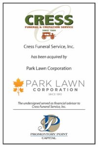 Whether initiatives are planned for 2020, 2021, or even beyond this timeline, to ensure success, we have found it is never too early to begin planning for tomorrow’s goals. We look forward to connecting with you during 2020 and invite you to visit our recently redesigned website at www.promontorypointcapital.com for additional information on our firm’s advisory services, investment banking capabilities, and numerous client successes.